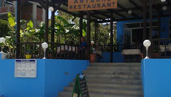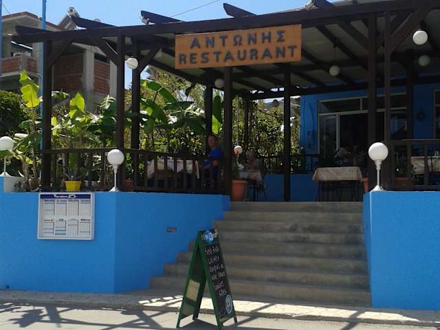 Antonios Restaurant liegt direkt am Strand von Stegna, getrennt nur durch die schmale Anliegerstrasse von Stegna. Mit einen tollen Ausblick auf das blaue Meer, umrahmt von Bannanenstauden.Das Essen schmeckt hier ausgezeichnet und die Portionen sind sehr gut. Wir waren im September mit vielen Freunden in Stegna und haben bei Antonio und seiner Frau Kiki einen wunderschönen Geburtstag gefeiert. Die Bauernbratwurst schmeckt nur bei Antonio so gut und auch die Spagetti mit Meeresfrüchten war nirgends zu toppen. Hier stimmt die Qualität, die Portionen und der Preis. Wir kommen wieder!