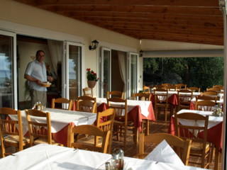 Wir haben unseren Urlaub im "Weißen Haus" von Spiros, dem Wirt der Taverne Dimakos, verbracht. Wir hatten HP gebucht und entsprechend unser Frühstück und Abendessen in der Taverne bekommen. Das Frühstück ist einfach, eben griechisch: Weißbrot, Butter, Marmelade, Wurst und Käse sowie täglich ein Ei und Tomate. Der Kaffee hat wider Erwartung gut geschmeckt, was ansonsten in Griechenland nicht immer üblich ist. Zum Abendessen wurden wir mit einem Menü verwöhnt, d.h. div. griechische Vorspeisen, ein Hauptgericht und Dessert. Wir haben in unserem Leben z. B. noch nie einen besseren Lammbraten mit grünen Bohnen, Schwertfisch, Stifado oder Briam gegessen. Die Schwiegermutter von Spiros versteht es zu kochen. Wer das angebotene Menü aus irgendeinem Grund nicht möchte, wird in die Küche geführt und kann sich dort etwas auswählen. Bei der Gelegenheit kann man sich auch gleich von der Sauberkeit der Küche überzeugen. Wir würden jeder Zeit wieder diese Taverne wählen - man fühlt sich willkommen und runherum gut versorgt.