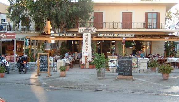 Die Taverne Eukalyptus ist eine recht neue Taverne direkt am Marktplatz von Gerogioupolis. Man findet sie gegenüber der Apotheke. Hier kann man von morgends bis abends griechisches Essen konsumieren. Die Preise sind ortsüblich und die Speisen werden frisch zubereitet und sind zudem sehr lecker. Der Service ist super. Andreas, der Kellner, der in diesem Sommer für seinen kranken Schwager als Kellner eingesprungen ist, ist wirklich sehr nett. Er spricht recht gut Englisch und auch ein paar Brocken Deutsch. Wir haben während unserer Besuche dort immer viele Wiederholungstäter gesehen. Auch wird diese Taverne von vielen Einheimischen und griechischen Touristen aufgesucht.