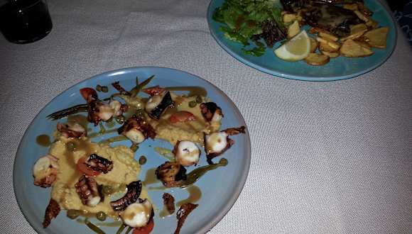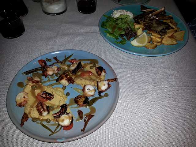 Snacks für die Kinder, kretische Spezialitäten für die Frau und eine wirklich phänomenale Pizza für mich für vergleichbar wenig Geld. Netter Service inkl. Plausch, WiFi, entspannte Stimmung. Leider kein Blick aufs Meer... sonst wäre es ja unerträglich schön.