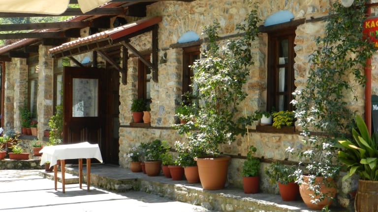 Unterhalb des Dorfplatzes, am Flüßchen Enipeas liegt ganz idyllisch die Taverne "Neromilos". Überreste einer alten Wassermühle sind noch zu erkennen. Die Küche ist bodenständich und gut, ohne viel Schnickschnack. Man erreicht das Lokal über eine Schotterstraße, welche die Straße nach Dion kurz vor der Brücke über den Fluß nach links verläßt.