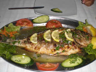 Ein paar Meter abseits vom Trubel des Dorfmittelpunktes liegt die Fischtaverne To Hellinikon. Die immer freundlichen Besitzer sprechen Englisch und Deutsch und servieren erstklassigen frischen Fisch, den man sich an den Kühlfächern aussuchen kann. Preislich ist es auch o.k.. Man sitzt ruhig mit Blick auf das Meer; leider ist noch der kleine Park zwischen Terrasse und Meer. Wir haben nach unseren immer sehr guten Fischmahlzeiten unaufgefordert und auf Kosten des Hauses immer eine Nachspeise serviert bekommen (z. B. Pfannkuchen mit Eis). Unser Tipp. hingehen und ausprobieren!