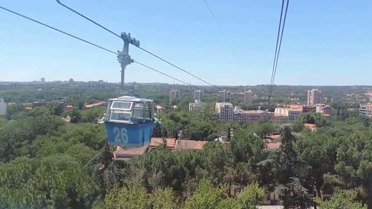 Die im Jahr 1969 eingeweihte "Teleférico de Madrid" verbindet die Station Paseo del Pintor Rosales im Parque del Oeste über den Fluss Manzanares mit der Station Casa de Campo im Herzen des gleichnamigenen Stadtparks. Die Talstation liegt 627 Meter über dem Meeresspiegel und die Bergstation auf einer Höhe von 651 Metern. Für die 2.457 Meter lange Fahrtstrecke benötigt die Seilbahn bei einer Geschwindigkeit von 3,5 Metern pro Sekunde etwa 11 Minuten. Die Seilbahn verfügt über 80 Kabinen, in denen jeweils bis zu sechs Personen Platz finden. Bei der Fahrt hat man die Gelegenheit, die historischsten Stadtteile sowie den grünsten Teil der Stadt aus der Vogelperspektive zu betrachten. Betriebszeiten und Fahrpreise siehe Homepage: https://teleferico.emtmadrid.es/