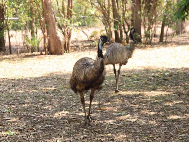 Der Territory Wildlife Park liegt südlich der Stadt. Durch den Park fährt eine Bahn, welche uns bei der tropischen Hitze sehr willkommen war. So konnten wir alle Attraktionen des Parks gut erkunden. Aber auch zu Fuß war dies gut machbar, alles ist sehr gut ausgeschildert. Der Eintritt ist mit 20 AUD pro Person hier gut investiert. Es ist ein sehr schön angelegter Park mit sehr vielen Tieren, welche sehr artgerecht gehalten werden. Besonders schön anzusehen waren die Vögel. Diese leuchteten in den schönsten Farben. Eine Vogelschau sahen wir uns auch an. Hier zeigte uns der Ranger auch, welche Flugkunststücke die Raubvögel des Nordens beherrschen, wenn sie ihre Beute schlagen.
