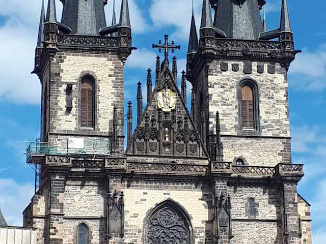 Direkt am Altstädter Ring befindet sich die Teynkirche mit ihren vielen Turmspitzen. Sie ist nach dem Veitsdom , die bedeutendste Kirche in Prag. Sie hebt sich durch ihre Größe deutlich von allen anderen Gebäuden am Altstädter Ring ab und sticht sofort ins Auge. Um 1500 erbaut im gotischen Stil.