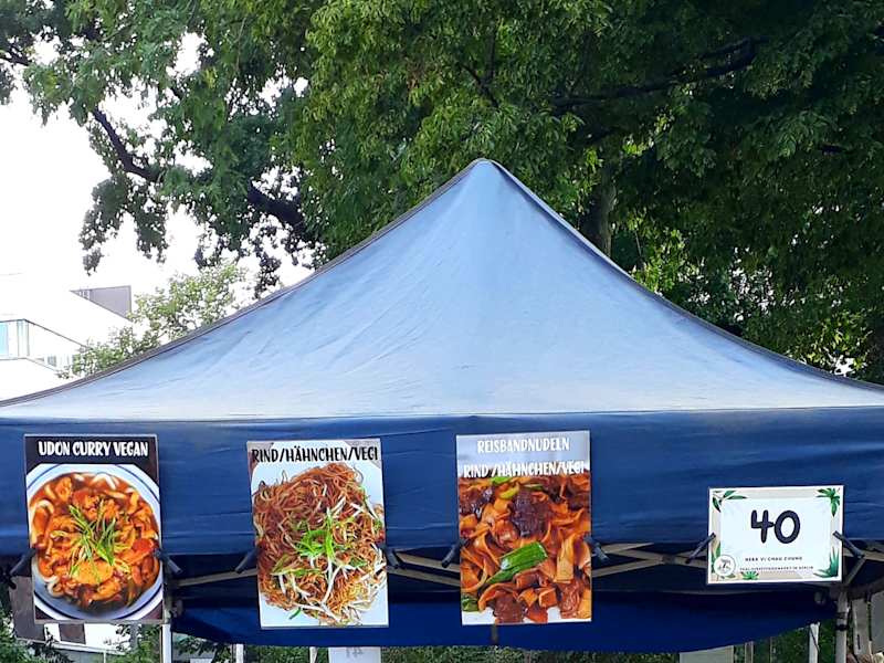 Im Preußenpark - auf dem Abschnitt, der Thaiwiese oder Thaipark genannt wird - findet man unter freiem Himmel ein großes Angebot an asiatischen Gerichten. In den kleinen „Garküchen“ werden die unterschiedlichsten Speisen zubereitet. Da wir möglichst vieles probieren wollten, hatten wir an diverese Ständen unterschiedliche Kleinigkeiten genommen. ANMERKUNG: es gab auch ein breites Angebot an „besonderen Leckereien“ die u.a. aus Rauben, Mehlwürmern, Heuschrecken und ähnlichem hergestellt und zubereitet wurden.