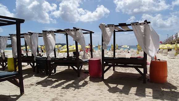 Wir waren einen Tag in Barbados und die Strand-Ausflüge der Reiseleitung waren uns zu teuer. Tipp der Crew: TheBoatyard am Strand von Bridgetown. Die Anfahrt mit dem Taxi ist recht günstig, unser Fahrer wusste auch sofort wo wir hin wollten (Englisch Kenntnisse nötig). The Boatyard nimmt eine Umlage für das erste Getränke, Liege und Sonnenschirm, sowie die Rückfahrt zum Schiff im Sammeltaxi. 2013 waren das 12 Dollar pro Person. Dafür liegt man an einem eher lebhaften Strandabschnitt der aber so breit ist, dass man es kaum merkt. Versorgt ist man durch die Bar, eine Brücke führt übers Wasser und am Ende kann man mit dem Seil in Wasser schwingen. Für einen faulen Tag sehr zu empfehlen.