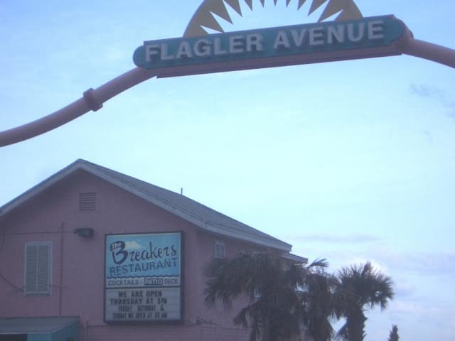 Super Strand restaurant, wo man aber auch abends noch gemütlich unter den Einheimischen sitzen kann! Netter, freundlicher Service und zivile Preise! Der Burger dort wurde auch schon mehrfach ausgezeichnet! Abends gelegentlich Veranstaltungen wie z.B. Karaoke, Live Musik, ... Lagebeschreibung: The BREAKERS Restaurant Flagler Avenue (am Strand) New Smyrna Beach, Fl.