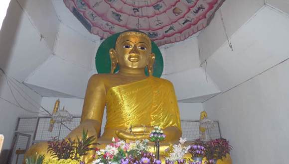 10 km nördlich von Mrauk U befindet sich das einstige Zentrums Rakhines aus dem 9. Jahrhundert. Die Reste der Stupa ist aus dem 3. Jahrhundert (327). Sie wurde im Pali-Style (Indien) erbaut. Der 5 m hohe Buddha ist ebenso alt. Es gibt noch ein 1000 Jahre altes Wasserreservoir, das zum Waschen genutzt wurde. Überall findet man Reste von alten Steinen aus dem 3. Jahrhundert. Wir besuchen ein Kloster in dem noch 3 Mönche leben. Als wir dort sind, wird vor der Pagode für die Menschen und Mönche gekocht. Alle sind sehr freundlich. Wir werden zum Essen eingeladen, was wir aber leider ablehnen müssen, da wir noch einiges auf unserem Programm an diesem Tage, stehen haben.