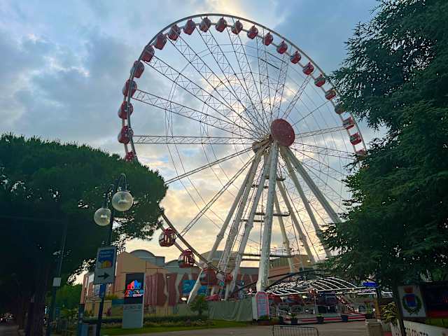 Das steht ja seit dem Jahr 2014 schon gegenüber des Pala Arrex, natürlich sehr Sehenswert hat glaube ich gute 252 Sitzplätze, aufgeteilt in 42 geschlossenen klimatisierten Kabinen. Aus fast 55 Metern Höhe dominiert das Riesenrad über Jesolo und passt das Wetter, ist die Sicht bis nach Venedig garantiert. Adresse Piazza Brescia