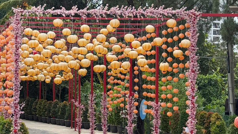 Viele religiöse Einflüsse beherrschen die malaysische Hauptstadt und somit kann man bei einer Besichtigung des Thean Hou Tempels ein wenig in die chinesische Kultur eintauchen. Der Standort der Tempelstätte befindet sich abseits vom Stadtkern auf dem Robson Hügel und ist vom KL Sentral Hbf. mit der Monorail erreichbar. Von der Ausstiegsstation "Tun Sambanthan" durchläuft man eine Überführung, geht rechts die Treppe runter vorbei an der Kuang Chang High School und läuft die Jalan Syed Putra entlang bis man irgendwann links auf eine steile Auffahrt und ein rotes, auffälliges Schild mit der Aufschrift "Thean Hou Tempel" trifft. (Bis hierhin sind es etwa 20-25 Gehminuten) Nun folgt noch ein kurzer Fußweg. Wer gehfaul ist und sich den schweißauftreibenden Weg ersparen möchte, kann sich auch ein Taxi nehmen, denn anders kommt man dort nicht hin. Bei Ankunft auf dem Gelände ist man von der äußerlichen Erscheinung des Tempels wirklich überwältigt. Die Bauweise ist mit typischen Elementen ausgerichtet worden wie gewölbten Ziegeldächern, an denen verschnörkelte Drachenfiguren und blumige Ornamente prangen, verzierten Säulen, farbigen Decken, dekorativen Wandbildern, chinesisch angebrachten Schriftzeichen und vielen anderen Details. Der Komplex hat insgesamt vier Ebenen, welche terrassenförmig angeordnet sind. In den jeweiligen Etagen gibt es Souvenirshops, ein Festsaal für Hochzeiten und Feiern, Büros, Verkauf von Essen und Toiletten. Auf dem obersten Aussichtsbalkon, der mit Verbindungsbrücken und Treppen verbunden ist, hat man einen tollen Panoramablick auf Kuala Lumpur. In weiterer Entfernung sieht man sogar den Menara Tower und die Petronas Towers. Ein Stockwerk tiefer ist der Tempelvorhof und ein kleiner Gebetsraum plaziert. Hier entzünden Gläubige traditionell Ihre Räucherstäbchen und stehen dabei betend vor dem mit Opfergaben gefüllten Altar. Auch Touristen können den heiligen Ort betreten, aber selbstverständlicherweise nur ohne Schuhe! Zum gegebenen Reisezeitpunkt laufen die Vorbereitungen des chinesischen Neujahrsfestes (Beginn zwischen dem 21. Januar und 21. Februrar eines Jahres) im vollem Gange an und der Tempel ist schon im Voraus mit knallroten Lampions geschmückt, die den offenen Bereich des Vorhofes überspannen. Im Außenbereich findet man einen Pavillon, einen winzigen Teich mit Figuren und eine Anlage der zwölf chinesischen Tierkreiszeichen vor. Neben jeder Tierskulptur ist ein Stein positioniert, auf dem die jeweiligen Charaktereigenschaften sowie die Jahreszahlen (jedes Jahr steht symbolisch für ein Lebewesen, welches sich alle zwölf Jahre wiederholt) aufgelistet sind. Die Anschauung des schönen Tempels ist unverzichtbar und sollte unbedingt auf der To-do Liste stehen. Die Besucher halten sich in Grenzen. Es ist keineswegs überlaufen und man kann sich alles in Ruhe anschauen und die Aussicht genießen. Der Eintritt ist kostenlos. Öffnungszeiten täglich von 8-22 Uhr.