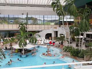 Diese Therme ist leider nicht mehr, wie sie einmal war. Im Sanitärbereich hat es nach Urin gestunken, einige Duschen defekt, einige Düsen in den Becken defekt, Einrisse und Abblätterungen am Dach, usw. Dann fragt man einen der Mitarbeiter, ob die Salzschale vor dem Dampfbad wieder aufgefüllt werden kann, weil auch andere Kunden bereits daraufhin gewiesen hatten. Antwort ja ja kommt gleich einer, nach einer halben Stunde immer noch keiner da gewesen. Personal macht auch einen echt gelangweilten Eindruck. Im Restaurant werden vom Restaurantleiter die Preise gemacht, wie er gerade lustig ist. Beispiel: An der Tafel steht kleiner Salat für ca. 8 Euro, berechnet aber einen großen Salat für ca. 15 Euro, klar kann man ja mal machen, weil die Preise, die tatsächlich berechnet werden, sieht man ja nicht gleich, weil das Ganze über einen Chip läuft, erst beim Bezahlen an der Kasse. So ist es auch mit einigen anderen Gerichten/Getränken, dass Preise gemacht werden, wie es gerade passt. Leider ist es in der Gegend die einzige Therme, deshalb führt man sich dann eben so auf aber dann fahre ich lieber ein Stück weiter in andere Thermen, in denen es nicht so zu geht.