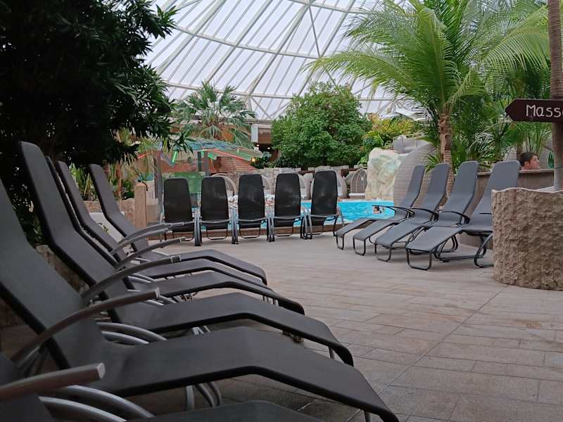 Wir sind extra aus Frankfurt gekommen, um einen Kurzurlaub in der Therme zu machen. An dem Spaßbad sind wir nicht interessiert, auch nicht an Sauna in Badekleidung, daher waren wir nur in der textilfreien Sauna. Die ist schon wirklich sehr schön gemacht, mit vielen unterschiedlichen Themenbereichen, gepflegten exotischen Pflanzen und einem großen Pool. Es ist also schon toll, dass mal gesehen und zu haben und ich war bislang in keiner anderen Therme, die da mithalten könnte. Leider hat die Therme aber so viele Schattenseiten, dass ich auf einen zweiten Besuch verzichten werde: 1. SIe ist hoffnungslos überlaufen. Trotz Einlassbeschränkung geht und steht man dicht an dicht. Im Pool wird man ständig von anderen Menschen berührt, was auch daran liegt, dass es gleich 2 Poolbars gibt und die Leute lange im Wasser herumstehen und -sitzen, um zu trinken. 2. Ich habe viele bekleidete Menschen im textilfreien Bereich gesehen, ohne dass das Personal etwas unternommen hat. 3. Man zahlt als Saunagänger zwangsläufig auch für das Spaßbad/Rutschen und den textilen Saunabereich, das macht das ganze doch sehr teuer. 4. Es gibt kein Dampfbad und keine 100 Sauna. 5. Um an einem Aufguss teilzunehmen, muss man 15-20 Minuten vorher in der Sauna drin sein, sonst ergattert man keinen Platz. Es werden sogar Plätze in der Sauna mit Handtüchern reserviert.