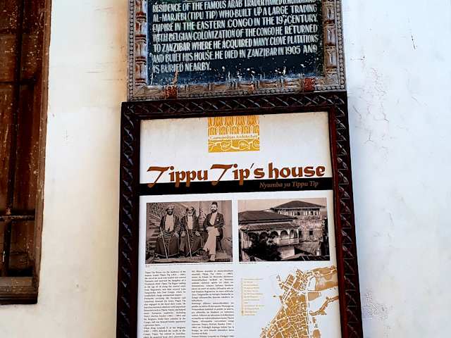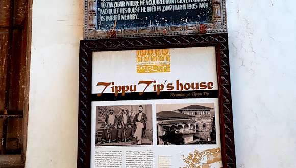 Achmed bin Muhammed oder mit Spitznamen Tippu Tip war seinerzeit der bekannteste und berüchtigtste Sklavenhändler Ostafrikas und auch noch darüber hinaus. Den Spitznamen Tippu Tip bekam er, weil er ständig mit den Augen zwinkerte. Einerseits galt er als sehr grausam, war aber dennoch sehr geachtet und sehr reich. Im 19. Jahrhundert ging die sansibarische High Society bei ihm ein und aus. Sein Haus befindet sich in der Suicide Alley unweit des Africa House Hotel. Wie fast alle historischen Häuser in Stone Town ist auch das Haus von Tippu Tip sehr baufällig, einsturzgefährdet und darf daher nicht von Innen betreten werden. Eine Tafel neben der pompösen Holzeingangstür erzählt seine Geschichte und lässt seinen Reichtum erahnen.