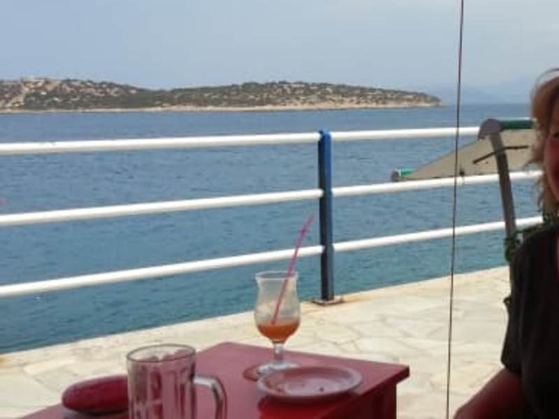 Das orginelle Cafe/ Bar befindet sich in Agios Nikolaos auf der Akti Koundourou 19.Das ist die Küstenstraße die von unserem Hotel Minos Beach zum Ortskern von Agios führt.Wie entdeckten es schon am ersten Tag weil es genau die Lage hat für eine erste Pause in Richtung Stadtkern. Das Cafe ist in einem Gebäude und gegenüber auf der anderen Straßenseite sind die Sitzgelegenheiten unter Schattenspendenden Pavillons-Grossschirmen. Sehr gemütlich mit bunten Holzstühlen und Pflanzen direkt am Meer , der Mirabello Bucht. Man schaut direkt auf die kleine Insel Agii Pantes und zum Kreuzfahrtschiff Anlegeplatz.Kristallklares Wasser. Man bekommt dort tolle Milchshakes und kleine Baguettes mit zb. Thunfischcreme.Frisch gepressten Orangensaft usw. Allerdings hat man natürlich die Geräusche von der Straße mit den Mopeds.Die gute Qualität der Getränke und die Traumaussicht gleichen das aber aus.Das Lokal ist einen Besuch wert.Die Preise sind auch entsprechend preiswert weil man ja nicht im Zentrum von Agios Nikolaos sitzt.Die Besitzerin kommt aus den Niederlanden und spricht gut deutsch.Wir geben trotz der Straße volle Sonnen für die Lage.