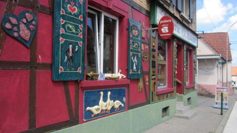Der Ort Soufflenheim ist weltbekannt als Töpferort. Der Ort ist zudem noch sehr schön. Es gibt viele kelien und große Töpfereien, in denen man der Produktion zuschauen kann. Jede Töpferei hat sein eigenes Motiv und es wird noch immer alles mit Entenfedern handgemalt. Das ganz ist sehr interessant, sehr schön und hatt allerdings auch seinen Preis.