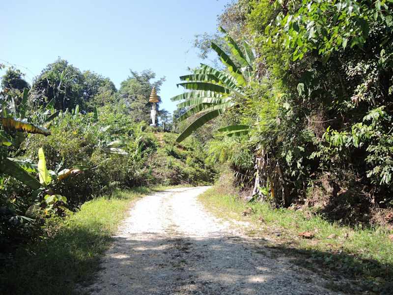 Von der Hauptstrasse 4 biegt man gegenüber dem Beyond Resort nach links ab. Hier ist schon der Sairung Waterfall ausgeschildert, deren Abzweigung dann nach ca. 1 km kommt. Wenn man aber auf der Strasse 4032 bleibt, kommt nach 5 km ein Abzweig nach rechts zum Ton Tham Waterfall. Anfangs geht es auf einer Beton-Strasse weiter, die aber schnell zu einem Schotterweg wird. (ca. 1,2 km) Mit dem Moped kommt man langsam vorwärts. Vor dem Wasserfall wird man von einem großen Buddha begrüßt. Am Wasserfall kann sich abgekühlt werden. Hier ist es total einsam und Natur pur. Allerdings ist der Wasserfall nicht iesig und es muss auch ein wenig geklettert werden.