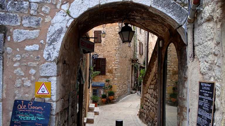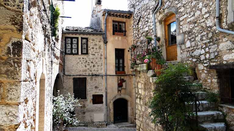 Diese mittelalterliche Stadt liegt 20 km von Nizza und 30 km von Cannes entfernt. Man befindet sich hier in einem richtigen Labyrinth von Straßen und Gassen. Wunderschöne alte Häuser, wo sich Ateliers und Boutiquen befinden. Ein richtiges Künstlerdorf, wo man die Künstler noch bei ihrer Arbeit beobachten kann. Maler. Töpfer, Bildhauer, Weber, Mosaikkünstler um nur einige zu nennen. Hier gibt es einen kleinen Laden, der Früchte und Gemüse aus der Umgebung anbietet. Die Pizzeria "La Grande du Loup bietet günstige Pizzamenüs". Sie wird auch die Veilchenstadt genannt, im März gibt es hier das Veilchenfest.