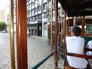 In Santos fährt eine historische Straßenbahn, genannt Lihna Touristica. Jeder Taxifahrer kennt die Abfahrtsstelle, wenn man mit dem Kreuzfahrtschiff nach Santos kommt, kostet ein Taxi mit Taxameter vom Hafen 21-25 Real. Die Straßenbahnfahrt kostet 6 Real, für 60+ nur 3 Real. Achtung, es gibt 2 verschiedene Fahrten, eine kurze durch das Hafenviertel 20 Minuten, eine lange durch die Stadt incl. Hafenviertel 60 Minuten. 2 Wagenzüge stehen zur Verfügung, Triebwagen mit Anhänger, wer es gemütlich mag, ein Triebwagen hat Ledersitze, alles andere sind Holzbänke. Erklärungen gibt es live, auch in englisch. Welche Runde gefahren wird sieht man an der ersten Weiche, geht es links rum , große Runde,geht es geradeaus, kleine Runde. Bei der großen Runde geht es vorbei an der Talstation der Schienenseilbahn, der Kathetrale,und anderen Sehenswürdigkeiten. Vormittags bilden sich lange Schlangen, wenn Kreuzfahrtschiffe in der Stadt sind, ab 13.00 Uhr wird es ruhig und man kann entspannt die Fahrt genießen. Gezahlt wird in Real, keine Kreditkarten.