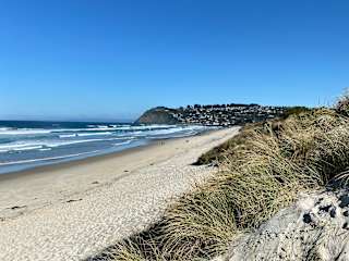 Unweit südwestlich von Dunedin. Sehr gut zu erreichen mit eigenem Transportmittel. Unser Lieblings-Strand in Neuseeland (siehe Foto)! Selbstverständlich kostenlos, also kein Eintritt!!! Auch der Weg dorthin ist ein Erlebnis! Lagebeschreibung: Geht von der Blackhead Road (also Richtung Blackhead) ab: Tunnel Beach Road. Am Ende ist ein kleiner Parkplatz. Hinweis/Insider-Tipp: Walk zum Starnd: Runter ca. 20 Minuten, zurück hoch ca. 40 Minuten. Die Strecke führt am Ende durch einen Tunnel mit Treppe, den ein 'lieber Ehemann' für seine gehbehinderte Frau in den Fels gehauen hat! Herrlich wenig los dort, also relativ untouristisch!