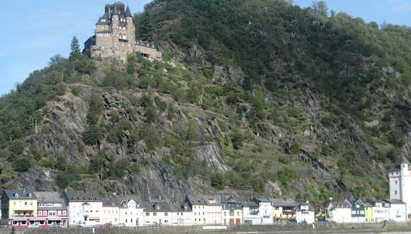 Die Uferpromenade von St. Goarshausen ist zwar nicht die größte und auch nicht die schönste Promenade am Rhein, aber wenn man hier ist, bietet sich durchaus ein Bummel über die Uferpromenade an, da man von hier sowohl einen guten Blick zur Burg Katz und zur Burg Maus, als auch auf St. Goar und zur Burg Rheinfels am gegenüberliegenden Rheinufer hat. Und vom Rhein aus hat man einen schönen Blick auf St. Goarshausen und zur Uferpromenade von St. Goarshausen.