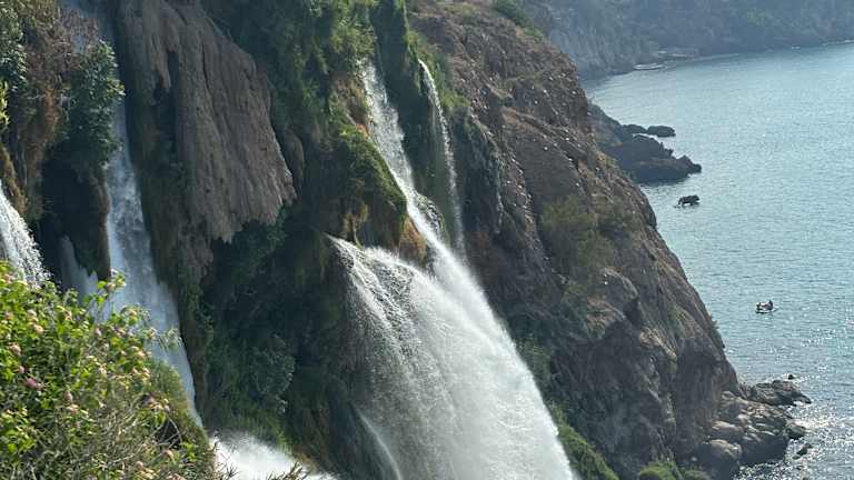 Die beiden Quellflüsse Kirkgözler und Pinarbasi aus dem Taurusgebirge vereinigen sich in den Düden Fluss. Dieser fließt zum Teil unterirdisch bis zur Steilklippe in Antalya. Dort lässt sich das wunderbare Naturschauspiel bewundern, wie der Untere Düden Wasserfall von 40 Metern Höhe über die Felsen ins Meer stürzt. Sie können den Wasserfall von der oben gelegenen Parkanlage bewundern, haben aber den besten Blick von einem Boot aus. Entsprechende Bootstouren werden vor Ort angeboten. Verfasst von HolidayCheck