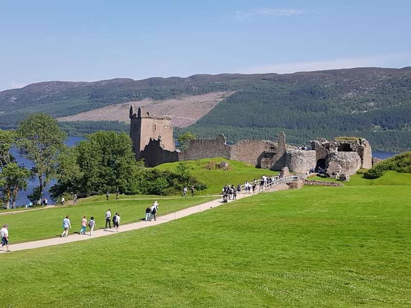 Das Urquhart Castle direkt am Ufer von Loch Ness bietet viel Geschichte. Im Kundenzentrum sollte man sich nach der Filmvorführung erkundigen - durch diese erfährt man die Geschichte (ohne Nessie) anschaulich und bekommt nach der Vorführung einen besonders schönen Blick auf die heutige Ruine gezeigt. Durch die Ruine selbst kann man gut laufen. Mit etwas Glück findet grade eine Vorführung auf einem der freien Plätze innerhalb der Ruine statt, in dem einem ein Angestellter die frühere Bewaffnung erklärt und zeigt, wie mit Schwert, Schild und Dolch umgegangen wurde. Und mit besonders viel Glück sieht man vielleicht noch Nessie?