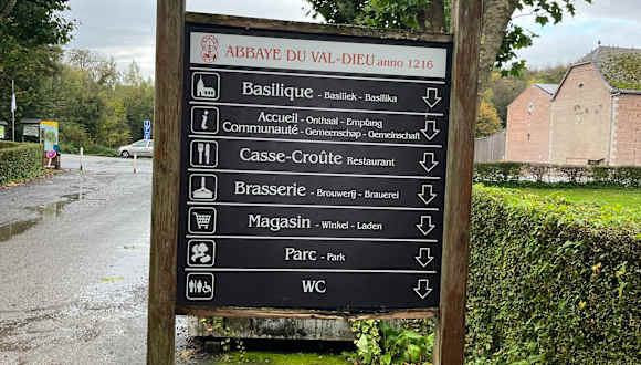 Wir haben das Val-Dieu Kloster spontan besucht. Es gibt eine Brassiere mit Bierverkostungen, ein Restaurant und einen Shop mit guter regionaler Auswahl. Die gesamte Anlage hat uns sehr gut gefallen.