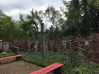 Im Aeschacher-Friedhof Kreuz, befindet sich ein großes Vertriebenendenkmal. In einem halbrunden Bogen stehen 9 Wappen von Regionen der Vertriebenen. Die Wappen sind an einer Säule angebracht. Davor ist Blumenschmuck. Vor dem Denkmal ist eine Grünfläche, links und rechts eine Bank, in der Mitte ein Kreuz. Die Regionen sind: Brandenburg, Baltikum, Auslandsdeutsche Ostpreußen, Sudetenland, Westpreußen, Danzig, Schlesien, Pommern. Adresse: Langenweg, 88131 Lindau Geodaten: HM3R+P6 Lindau
