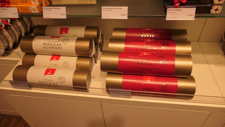 Bei unserer Heimreise von Magdeburg mussten wir im Erfurter Hauptbahnhof umsteigen und hatte dabei ca. 45 Minuten Aufenthalt. Wir nutzten diese Zeit u.a. dazu, dass wir bei Viba Sweets noch einige leckere Süßigkeiten mit Marzipan bzw. Nougat gekauft haben (wovon wir bereits im Anschlusszug etwas verzehrt haben). Hier im Geschäft im Hauptbahnhof bekommt man auch so manches zu teils stark reduzierten Preisen.