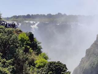 Wir besuchten die Wasserfälle im Rahmen einer Rundreise durch 5 Länder Afrikas, Ende März, Wahnsinn was da für Wassermassen runterlaufen. Der Eintritt kostet 20 US Dollar, unbedingt einen Regenschutz mieten, sonst wird man nass bis auf die Haut. Nehmt einen Fotografen, es werden wunderschöne Bilder, die man mt dem Handy niemals hinbekommt, wegen des Gegenlichts. 2 Stunden sollte man einplanen, wenn man alle Wege ablaufen will, incl. der Brücke. Macht einen Hubschrauberflug über die Wasserfälle, auf Simbabwe Seite ist der Flug mit 150 US Dollar preiswerter. An der Brücke /Grenze Sambia/Simbabwe kann man Bungee Jump, Zip Line etc. machen.