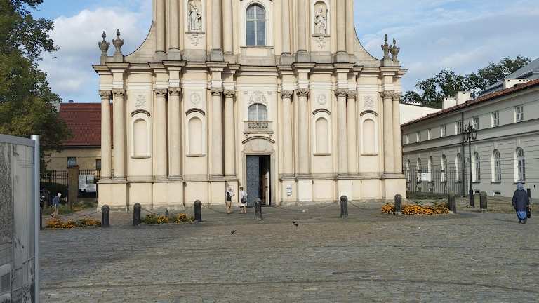 Als eines der wenigen Gebäude im Innenstadtbereich wurde die Kościół Wizytek (Visitantinnen Kirche) im Zweiten Weltkrieg nicht zerstört. So ist also dieser bedeutende Sakralbau noch im Originalzustand erhalten (von den Änderungen abgesehen, die bei Renovierungsarbeiten vorgenommen wurden). Die Kirche liegt etwas zurückgesetzt an der Ul. Krakowskie Przedmieście. Die Fassade der Visitantinnen-Kirche ist mit Säulen aufgelockert, was dem Bau eine gewisse Leichtigkeit verleiht. Oben auf den Säulen stehen diverse Heiligenfiguren. In der recht hellen Kirche fällt einem die Kanzel ins Auge, die die Form eines Schiffsbugs hat. Auch der Hauptaltar mit großem Altarbild beeindruckt sehr. Zudem sind in der Kirche sehenswerte Stuckarbeiten. Übrigens hat in dieser Kirche Frédéric Chopin als Schüler zwischen 1825 und 1826 bei Schulmessen die Orgel gespielt. Die Kirche ist dem Heiligen Joseph genannt, weswegen sich auch als Kościół Opieki św. Józefa (St.-Josephs-Kirche) bezeichnet wird. Vor der Kirche, leicht versetzt, befindet sich das Denkmal von Stefan Kardinal Wyszyński. Er war der ehemalige Bischof von Lublin und spätere Erzbischof von Gniezno (Gnesen) und Warschau, sowie Primas von Polen und Kardinal.