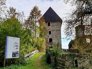 Der Rundweg hat eine Länge von ca. 2 Kilometer, Gehzeit ca. 1 - 1 1/4 Stunden, ist eine schöne Wanderung auch für Familien und nicht so trainierte Personen bestens geeignet. Im Schlosswald befinden sich Infotafeln über die heimischen Singvögelarten und dieser Rundweg führt fast immer um die Burgruine. Dieser Vogelstimmenweg beginnt beim Marktplatz in Ligist, zwischen Gasthaus und Bank folgen wir dem Weg. Nach ca. 200 Meter biegen wir vom Weg nach links ab und wandern nach der Markierung weiter und wir können die Burg schon entdecken. Nach einer Weggabelung halten wir uns wieder links und nach einem kurzen Weg durch den Wald kommen wir auf die Burgwiese. Hier haben wir die Möglichkeit auf einem Bankerl eine Rast einzulegen mit schönem Blick auf den Ort Ligist. Weiter geht es zur Burgruine (Besichtigung) dann links an der Burg vorbei durch den Wald. Bei der nächsten Gabelung halten wir uns rechts und kommen auf den selben Weg wo wir gekommen sind. Wirklich eine schöne Wanderung für Jedermann !!!