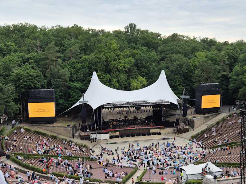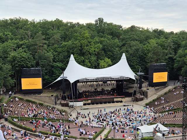 Wir waren beim Sommerkonzert der Philharmoniker auf der Waldbühne. Die Stimmung war gewaltig, das muß man gesehen haben. Für Verpflegung ist gesorgt. Einziges MInus: Es gibt in der Nähe nur eine S-Bahnstation, zu der nach Beendigung des Konzertens 20.000 Leute strömen. Die S-Bahn wurde nicht verstärkt; d.h. 10 Minuten Takt. Die eng gedrängte Wartezeit auf den Zug war ziemlich unerfreulich. (Wenn in Wien Veranstaltungen im Stadion sind verkehrt im Anschluß daran die U 2 alle 2-3 Minuten.)