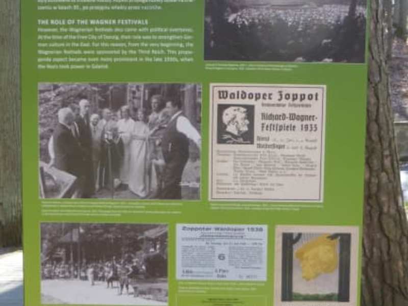 Die Opera Leśna, die Waldoper, liegt etwas außerhalb von Sopot / Zoppot. Vom der Straße / Ulica Bohaterów Monte Cassino (Stadtzentrum) beträgt die Entfernung ca. 1,0 bis 1,5 km (je nach Startpunkt). Der Fußweg führt von der Ulica Bohaterów Monte Cassino aus, vorbei an der Kościół rzymskokatolicki pw. św. Jerzego (römisch-katholische Kirche St. George), durch die Bahngleis-Unterführung. Nach Überquerung der Aleja Niepodległości (Unabhängigkeitsstraße) kommt man in die Ulica 1. Maja (Straße des 1.Mai). Etwas später geht es leicht bergauf durch den Wald, vorbei am Parkplatz und am Hotel Opera. Kurz nach dem Hotel Opera steht man vor dem Eingang zur Waldoper. Die Eröffnung der Waldoper (erste Aufführung) war am 11.08.1909. In den 1920-er Jahren bis 1944 waren in Sopot die Werke von Richard Wagner groß angesagt, man nannte Sopot auch das „Bayreuth des Nordens“. Der Spielbetrieb ging bis zum 11.08.1944, als die Waldoper kriegsbedingt geschlossen wurde. In der Nachkriegszeit wurde die Waldoper nur selten bespielt, man hatte damals andere Sorgen. Erst als Anfang der 1960-er Jahre eine Modernisierung, Überdachung und Erweiterung der Sitzmöglichkeiten erfolgte, wurde wieder ein regelmäßiger Betrieb aufgenommen. Heute haben in der Waldoper 4.400 bis 5.000 Zuschauer Platz. Hier finden nicht nur Opernaufführungen statt, sondern auch internationale Rock- und Popkonzerte. Außerdem steht jährlich ein großes Musikfestival und ein Schlagerfestival auf dem Programm. Die Opera Leśna ist eine äußerst schöne Bühne, wunderbar im Wald gelegen. Obwohl bei unserem Besuch keine Veranstaltung bei der Waldoper war, hat es uns dort sehr gut gefallen.