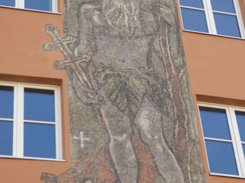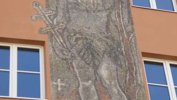 Hauswandbild vom Heiligen Onuphrius am Marienplatz