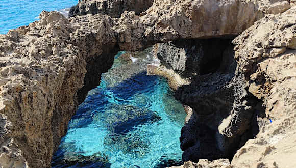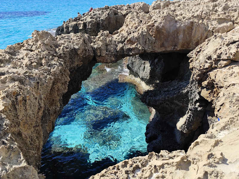 Ein wirklich Interessanter und mit schönen Ausblicken gespickter Wanderweg ist der Küstenweg von Ayia Napa zum Kap Greco. Vom Hafen Limanaki aus läuft man erst ein Stück Sandstrand und am Hotel Grecian Sands beginnt dann ein gut ausgebauter Promenadenweg, der oberhalb der Küste verläuft. Die Strecke bis zum Kap Greco ist etwa 7 Km lang und es gibt Einiges entlang des Weges zu sehen. Zum einen wären da der Skulpturenpark, der Kaktuspark, der Monachus Monachus Bogen (Naturbogen unterhalb des Skulpturenpark), die Love Bridge, Seehöhlen und kleine fast menschenleeren Strände und Buchten. In der Nebensaison waren wir die komplette Strecke alleine ohne andere Wanderer zu treffen. Da die wenigen Snackbars entlang der Strecke in der Nebensaison alle noch geschlossen sind, sollte man die Wanderung gut vorbereitet starten. Gutes Schuhwerk, ausreichend Sonnenschutz und genügend Wasser sollten Pflichtprogramm sein.
