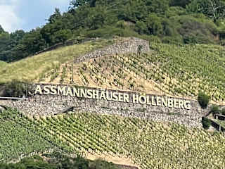 Die Rotweingemeinde Assmannshausen am Rhein ist ein Ortsteil von Rüdesheim. Assmannshausen ist ein guter Ausgangspunkt oder Zielpunkt unterschiedlicher (Weinberg-)Wanderungen. Der Ort ist für seinen Rotwein bekannt (Spätburgunder) und so kann man bei einer Weinbergwanderung im Herbst, vor der Traubenlese, viele Anbauflächen mit den blauen Trauben sehen. Bei einer Wanderung durch die Weinberge von Assmannshausen hat man das ganze Jahr über viele schöne Aussichtsmöglichkeiten auf den Rhein, teilweise zur Burgruine Ehrenfels, über den Rhein hinweg rüber zum linken Rheinufer (so z.B. zur Burg Rheinstein und Burg Reichenstein) usw.. Oder man führt mit der Niederwald-Seilbahn Assmannshausen von Assmannshausen aus hoch zur Bergstation beim Jagdschloss Niederwald und läuft von dort zum Niederwalddenkmal und zum Niederwald-Tempel oberhalb von Rüdesheim. Von dort kann man entweder durch die Weinberge zurück nach Assmannshausen laufen, oder durch die Weinberge runter nach Rüdesheim oder mit der Seilbahn Rüdesheim runter nach Rüdesheim fahren. Aber ab / bis Assmannshausen gibt es noch andere Wandermöglichkeiten, so z.B. mehr oder weniger am Rhein entlang flussab oder flussauf. Wir haben Assmannshausen und die Weinberge von Assmannshausen als sehr schönes Wandergebiet erlebt.