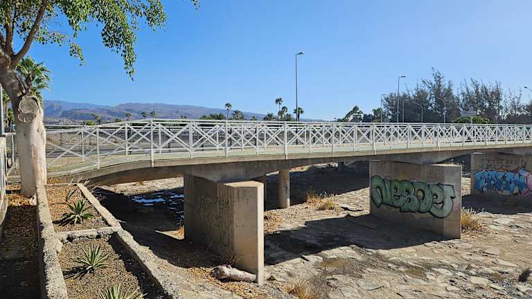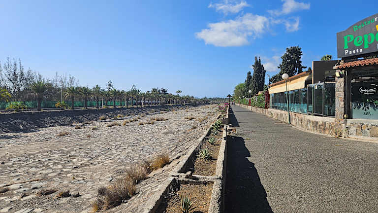 Der Weg führt direkt von den Dünen entlang dem Naturschutzgebiet - sehr schön und sehenswert. Dann geht es weiter an einer Einbahnstraße mit tollem Radweg und schließlich hinter dem botanischen Garten entlang des Barrancos zu den Hotels im Campo International. Drei ganz unterschiedliche Eindrücke - ein Erlebnis. Beachtet die Fotos!