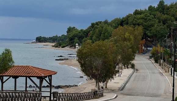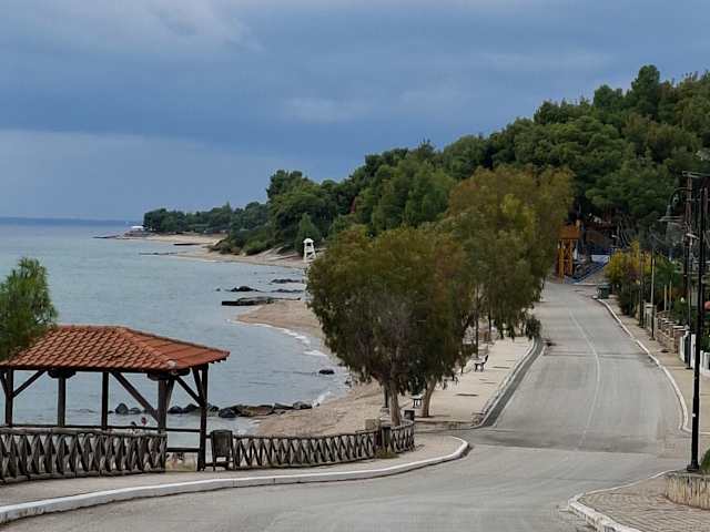 Vom Hotel Amari wanderten wir in ca. 2 1/2 Stunden nach Nikiti (ca. 8 km). Die Wanderung führte über Metamorphosis dann durch lichte Pinienwälder, immer oberhalb des Strandes, an kleinen Appartmentanlagen und Privathäusern vorbei, bis auf die Strandpromenade in Nikiti, die erst vor kurzer Zeit neu gestaltet wurde. Auf der Wanderung erlebten wir viel Natur, Vögel, Schmetterlinge und Eidechsen - außerdem Katzen und Hunde, die hier frei unterwegs waren. Außerdem hatten wir öffters schöne Ausblicke von der Steilküste auf das Meer und die gegenüberliegende Kassandra. Nach einer Stärkung am Strand von Nikiti ließen wir uns dann mit einem Taxi nach Metamorphosis (10 Euro) zurückfahren.