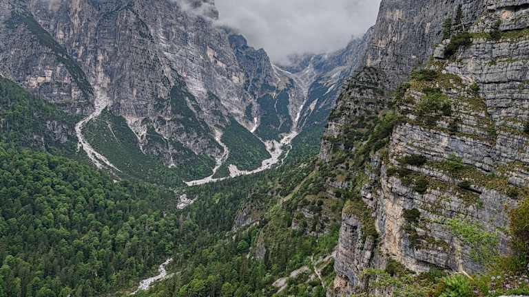 Von Molveno geht man die "Via Belverde" bis zur Liftstation. Hier beginnt der Weg Nr. 6 bis zur Hochebene Pradel. Alternativ nimmt man die neue Gondelbahn, die aber erst ab Juni fährt. Oben geht es weiter auf dem Weg Nr. 340, ein ausgesetzter Pfad im Fels mit wunderschönen Ausblicken, bis zum "Rifugio Croz dell´Altissimo". Der Abstieg erfolgt über der Forststraße Nr. 340 durch "Valle delle Seghe" bis zu "Bata Ciclamino", hier links abbiegen und weiter bis zur "Via Dlomiti". Dauer: 4h30´ Länge: 9 km Höhenunterschied: 600 m