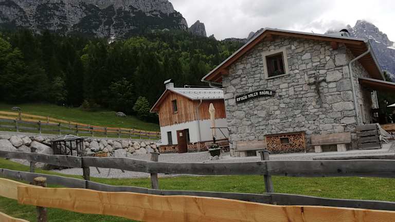 Fahrt mit der Gondelbahn zur Bergstadion am Pradel (1367 m) Von hier aus zu Fuß auf dem Weg Nr. 6 über Malga Tovre (1452 m) zur Rifugio La Montanara mit herrlicher Aussicht auf die Bergwelt. Abstieg auf dem Weg Nr. 340b und dann nach rechts auf dem Bergsteig Nr. 6 zur Rifugio Choz Dell`Altissimo. Entweder den gleichen Rückweg nehmen oder den Weg Nr. 5 über Baita Ciclamino zurück nach Molveno.