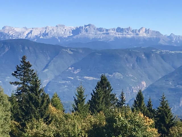 Unterwegs und am Ziel atemberaubende Aussichten ins Tal und zu den Dolomiten. Da es bis zum Restaurant ca. 1 1/2 Stunden sind, keine Massenewegungen. Schade dass das Hotel auf dem Penegal und dessen drumherum so runtergekommen ist.