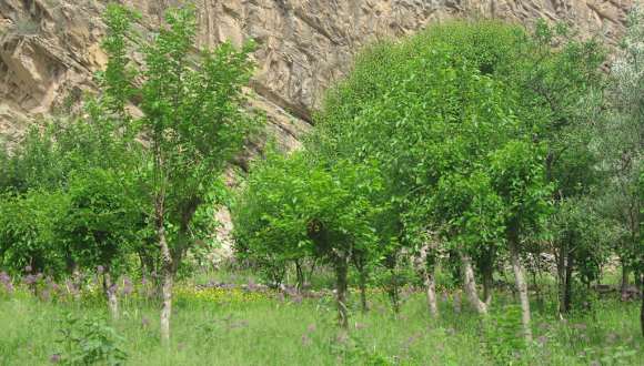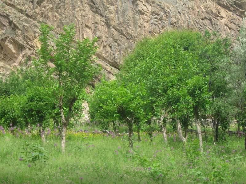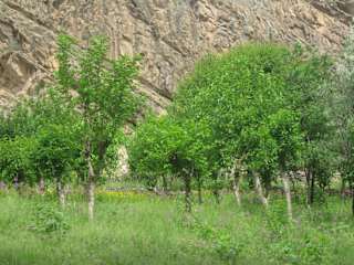 Die Wanderung begann ab unserem Gästehaus in der Mitte vom Gebirgsdorf Sentyab. Wir wurden bei dieser Sentyab-Wanderung von einem örtlichen Reiseleiter begleitet. Zuerst ging es einen leicht ansteigenden Pfad zum oberen Dorf von Sentyab. Die Ortschaft Sentyab ist eine grüne Oase inmitten einer Gebirgskette. Da die Bewohner von Sentyab überwiegend von der Landwirtschaft leben, sieht man neben den Gemüsegärten auch einige Obstgärten mit Maulbeer- und Walnussbäumen. Eine Bäuerin mit ihren Kindern erntete gerade die Maulbeerfrüchte. Die Bäuerin kam zu uns und bot uns freudestrahlend die geernteten süßen Früchte zum Probieren an. Die Nachbarin backte gerade Fladenbrot. Sie freute sich sehr, als wir ihr beim Einschieben des Brotteiges in den Lehmofen zuschauten und nebenbei beantwortete sie ganz höflich, die gestellten Fragen unseres Reiseleiters. Nicht nur die Dorfkinder winkten uns schüchtern zu, auch die meisten Erwachsenen grüßten uns durch Handzeichen oder Nicken. Die Dorfbewohner überraschten uns durch Freundlichkeit und Aufgeschlossenheit gegenüber Fremden. Da die Straße für Autos im oberen Dorf noch schlechter war als im unteren Dorf von Sentyub, bleiben Esel immer noch ein unentbehrliches Transportmittel für die einheimische Bevölkerung. Aufgefallen ist uns, dass man Männer auf dem Esel sitzen sah und die Frau hinter den Esel herging. Wir sahen aber auch einige Frauen auf dem Esel sitzen, die unterwegs zum Dorf waren. Auffällig war auch, dass man im Dorf neben neueren Häusern gelegentlich auch noch sehr alte Hausruinen sah. Ein sehr interessantes usbekisches Dorf. Der Weg führte uns teilweise entlang eines Gebirgsbaches. Am Ende des Dorfes hüpften wir auf Steinen über den schmalen Bach. Auf der anderen Seite des Baches konnte man nämlich alte Felsenzeichnungen bestaunen. Nach einer kurzen Rastpause ging es dann weiter zur Festung von Sentyub. Dieses war nun das steilste Stück unserer Wanderung. Aufgrund der Hitze blieben einige Reiseteilnehmer lieber am Gebirgsbach sitzen. Bei richtigem Schuhwerk war diese etwas stärker ansteigende Strecke jedoch kein Problem. Der Aufstieg hat sich wirklich gelohnt, man hatte eine phantastische Aussicht auf die grüne Oase Sentyub und auf die umliegende Bergwelt. Von der Festung stehen nur noch mehrere Ruinen. Das erste Haus der Festung ist von einer einheimischen Familie bewohnt, die auch Schafe züchten und vermutlich einige Ruinen als Schafstall benutzen. In den 30er Jahren soll im Nuratau-Gebirge von der Sowjetunion sehr viel Erz gefördert worden sein. Nach dem Zusammenbruch der Sowjetunion verließen viele Grubenarbeiter das Land Usbekistan. Der örtliche Reiseleiter erzählte uns einiges über die Geschichte der ehemaligen Festung und über Land und Leute vom Nuratau-Gebirge. Nach einer Verschnaufpause ging es auf dem gleichen Weg wieder zurück zur Ortschaft Sentyab. Eine interessante leichte Wanderung in einer traumhaften Landschaft.
