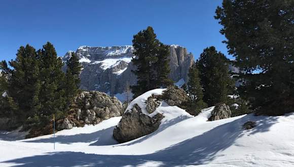 Dieser einmalig schöner Panoramaweg verbindet das Sellajoch (Jëuf de Sela) mit dem Wandergebiet der Seiser Alm (Plattkofelhütte). Er wurde benannt nach dem letzten König des Königreiches Sachsen, Friedrich-August III (1865-1932), einem großen Dolomitenfreund, auf dessen Initiative hin der Höhenweg im Jahre 1906 angelegt wurde. Ausgangspunkt der Wanderung ist das Sellajochhaus (2180 m, Parkplatz) unterm Sellajoch (Jëuf de Sela). Auf einem breiten Schotterweg geht es erstmal steil hinauf durchs Pistengebiet zur Friedrich-August Hütte ; der Weg an sich ist eher uninteressant, aber die Ausblicke auf das ganze Langkofelmassiv, den Sass Pordoi (Pordoi Spitze, 2950 m) und den Piz Boè (3152 m) sind wirklich einmalig. Hier beginnt der eigentliche Königsweg, der uns in ungefähr zwei Stunden zur Plattkofelhütte (2297 m) führen wird. Der gemütliche Pfad schlängelt sich, immer am Hang entlang querend, unter den Südwänden des Plattkofels (Sas Plat, 2963 m) – im Auf und Ab – über die Pertini Hütte (2316 m, Einkehrmöglichkeit im Sommer) zur Plattkofelhütte am Fassajoch. Unterwegs hat man sagenhafte Ausblicke auf den Plattkofel (Sas Plat, 2963 m), die Gipfel der nördlichen Rosengartengruppe und (auf dem Rückweg) das Sella Massiv und die vergletscherte Marmolata (Marmoleda, 3343 m, der höchste Berg der Dolomiten). Hier hat man Anschluss an das Wandergebiet der Seiser Alm (Zallingerhütte, Tierser-Alpl-Hütte, Seiser Alpenhaus, u.v.a.) ; auch die Besteigung des Plattkofels über einem Serpentinenweg ist möglich (relativ unschwierig, hin und zurück 3.30 Stunden). Der Rückweg verläuft auf derselben Strecke wie der Hinweg. Die ganze Tour dauert ungefähr 4.30 bis 5 Stunden und kann auch problemlos mit Kindern durchgeführt werden ; gutes, festes Schuhwerk ist aber unerlässlich. Gesamtsteigung: etwa 400 Meter (geländebedingt). Empfehlenswerte Karte: Freytag & Berndt Wanderkarte, WKS 5, Grödner Tal–Sella–Marmolata (Maßstab 1:50.000). Fazit, eine einfache aber glanzvolle, königliche Höhenpromenade im Grenzgebiet zwischen deutscher und ladinischer Sprache. Absolut empfehlenswert.