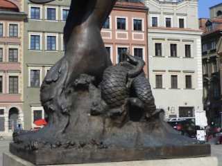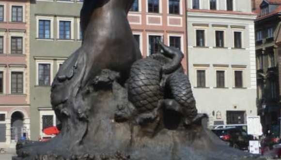 Die Seejungfer von Warschau ist DIE Symbolgestalt und DAS Wahrzeichen der Stadt. Man findet sie im Stadtwappen. Aber auch Denkmäler sind ihr gewidmet, das bekannteste Denkmal der Seejungfer befinden sich auf dem Altstadtmarkt (seit 1855, mit einigen Unterbrechungen). Weitere sind auf dem Markiewicz-Viadukt / Nähe Hotel Bristol (von 1905) und am Weichselufer (diese stammt aus dem Jahr 1939). Dazu ist sie auf vielen Hausschildern und Werbeschildern, auf Bildern und Plakaten usw. Und natürlich wir sie für so manchen Touristennepp missbraucht. Man sagt, die Seejungfer beschützt Warschau, und dies hat, wie die Sage berichtet, folgenden Grund: Einst schwamm eine Seejungfrau von der Ostsee der Weichsel entlang nach Süden. Als sie müde wurde, ruhte sie sich am sandigen Ufer des Flusses aus. Die Umgebung gefiehl ihr sehr gut und sie beschloss, dass sie hier bleibt. Den Fischern, die hier lebten, spielte sie so manchen Streich und sie befreite die Fische aus den Fischernetzen. Die Fischer waren darüber sehr ärgerlich und wollten sie bestrafen. Am Ufer der Weichsel sang die Seejungfrau ihr Lied über die Weichsel. Die Fischer waren davon sehr gerührt und sie versprachen, dass sie der Seejungfrau nichts antun würden. Ein gieriger Kaufmann entführte jedoch die Seejungfrau und wollte mit ihr und mit ihrem Gesang Geld auf dem Jahrmarkt verdienen. Er sperrte sie in eine Holzkiste. Das Weinen der Seejungfrau hörte ein Fischerjunge und der befreite zusammen mit seinen Freunden die Seejungfrau. Als Dank versprach die Seejungfrau, dass sie den Ort für immer beschützen würde. Aus diesem kleinen Fischerdorf entwickelte sich die große Stadt Warschau. Man sagt, dass noch heute die Seejungfrau aus der Weichsel auftaucht und schaut, ob in und mit Warschau alles in Ordnung ist. Halten Sie die Augen offen, vielleicht sehen sie die Seejungfrau mal selbst einmal.