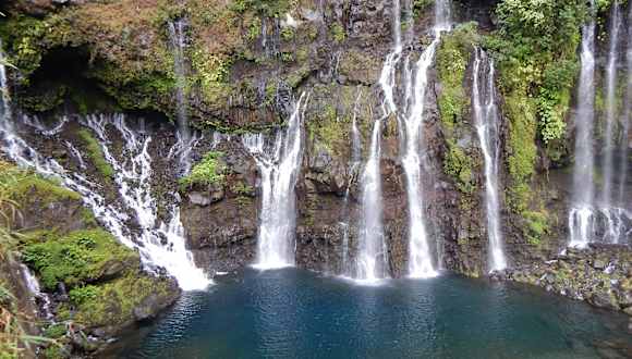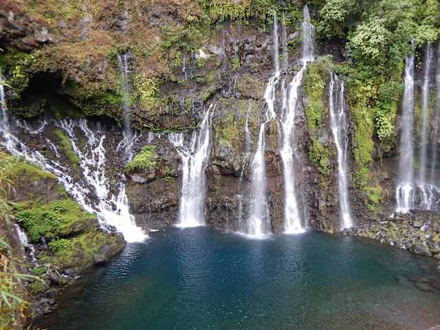 Der Wasserfall von Grand Galet bei St. Joseph (Langevin) im Süden von Reunion ist einer der allerschönsten und eindrucksvollsten den wir gesehen haben. Die Anfahrt an einem Flusslauf entlang und über mehrere enge Brücken ist etwas mühsam, besonders der letzte Abschnitt weist eine extreme Steigung mit sehr engen Steilkehren auf. Was aber dann zu sehen ist, ist eine wahre Perle: in steilen säulenartigen Kaskaden, die an die Säulen einer Kirche erinnern ergießt sich die Kaskade in ein türkis-schwarzblaues Becken. Wer auf der Insel La Reunion ist, sollte das auf keinen Fall verpassen.