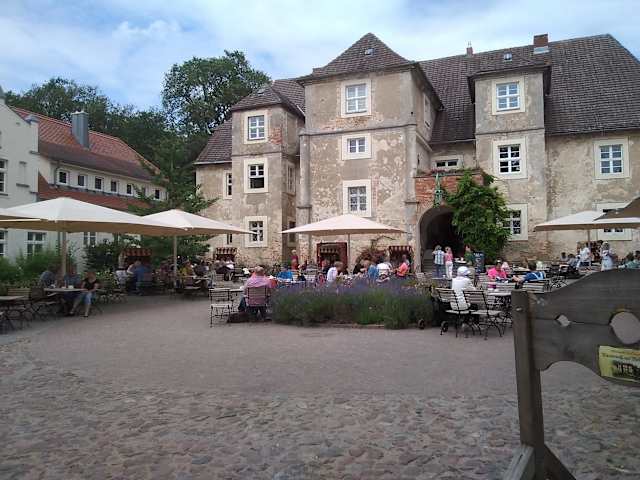 Wir haben in diesem Schloss sehr leckeren Kaffee und Kuchen verspeist. Das Restaurant/Cafe finanziert sich durch die Einnahmen des Schlosses. Es befindet sich eine Brauerei im Schloss. Die Biere können natürlich verkostet werden!