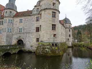 Das Wasserschloss in Mitwitz ist das Wahrzeichen des beschaulichen oberfränkischen Dorfes und wurde von den Bamberger Freiherren von Schaumburg errichtet - und zwar schon vor mehr als 750 Jahren. Mehrere Besitzerwechsel, der Bauernkrieg und ein Brand im Jahre 1525 setzten dem Schloss arg zu, bis es dann 1525 von dem Geschlecht der Würtzburger erworben und Ende des 16. Jahrhunderts in seiner heutigen Form als trutziger Vierflügelbau mit Wassergraben, Ecktürmen, einer Kapelle und dem beeindruckenden Innenhof umgebaut wurde. Noch heute in Familienbesitz, wurde das Mitwitzer Wasserschloss über einen Zeitraum von 12 Jahren umfassend durch den Landkreis Kronach saniert, dem man im Gegenzug dafür ein 99 Jahre währendes Nutzungsrecht einräumte. Im Rahmen einer Führung kann man heute das Wasserschloss mit seinem Innenhof samt Neptunbrunnen und „fränkischem Ritter“, sowie der Schlossküche und zahlreichen historischen Räumen im Rahmen einer spannenden Führung besichtigen. Mobiliar aus vier Jahrhunderten, prachtvolle Kachelöfen, unzählige Gemälde, der „Weiße Saal“ und das Spiegelzimmer sind liebenswerte Relikte einer lange zurückliegenden Zeit. Der Rundgang durch das Renaissance-Schloss hat mich nachhaltig beeindruckt und lohnt auf jeden Fall einen Abstecher.