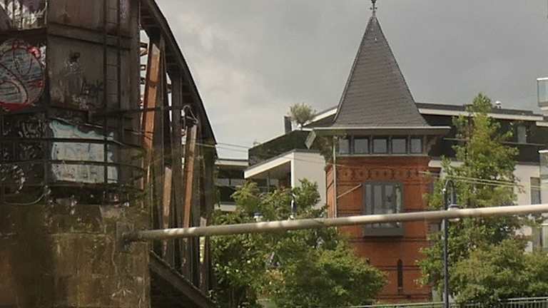 Wasserturm am linken Elbufer vor der Hubbrücke
